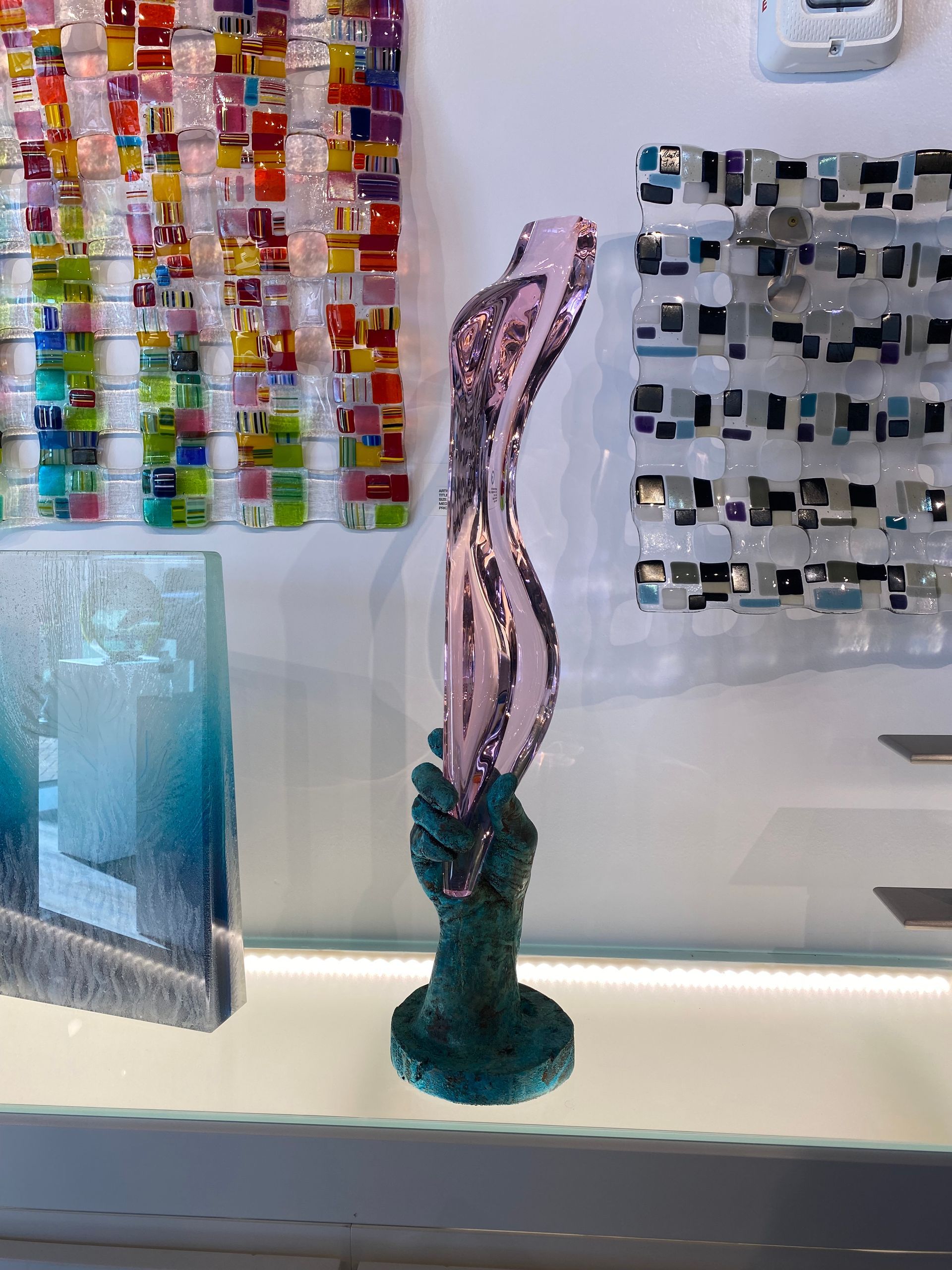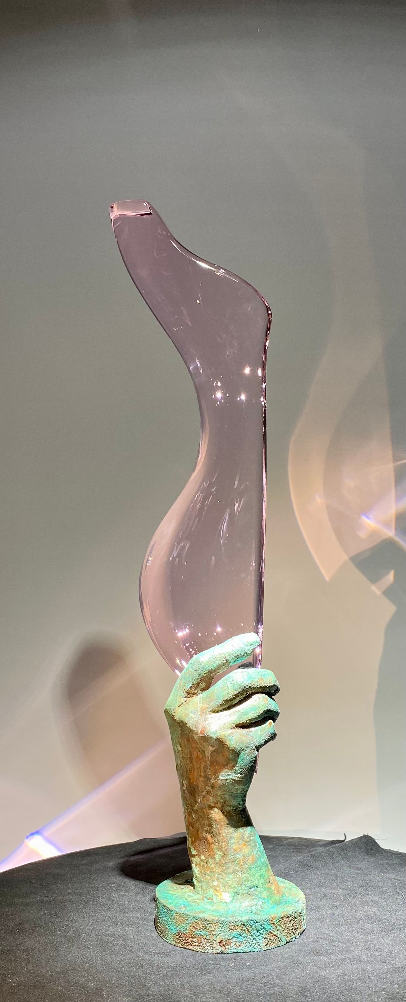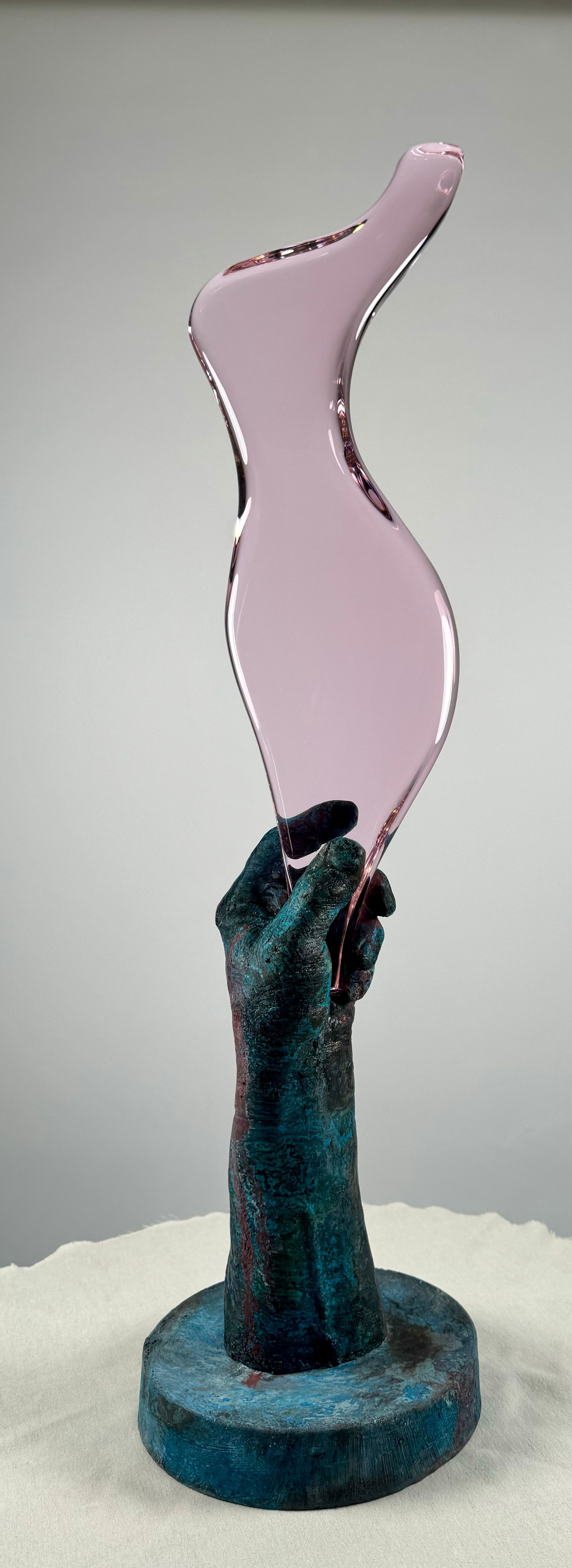 The Adams Rib series showcases a glass silhouette of a women's figure being displayed by the hand of a man. Showing both the contrast and connection between the two.